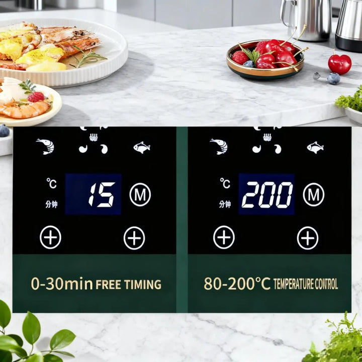 The 6L capacity air fryer accommodates generous portions, allowing you to prepare a variety of meals from classic fries and fried chicken to grilled fish, pizza, steak, and grilled wings. Perfect for solo dining or entertaining guests at dinner parties.