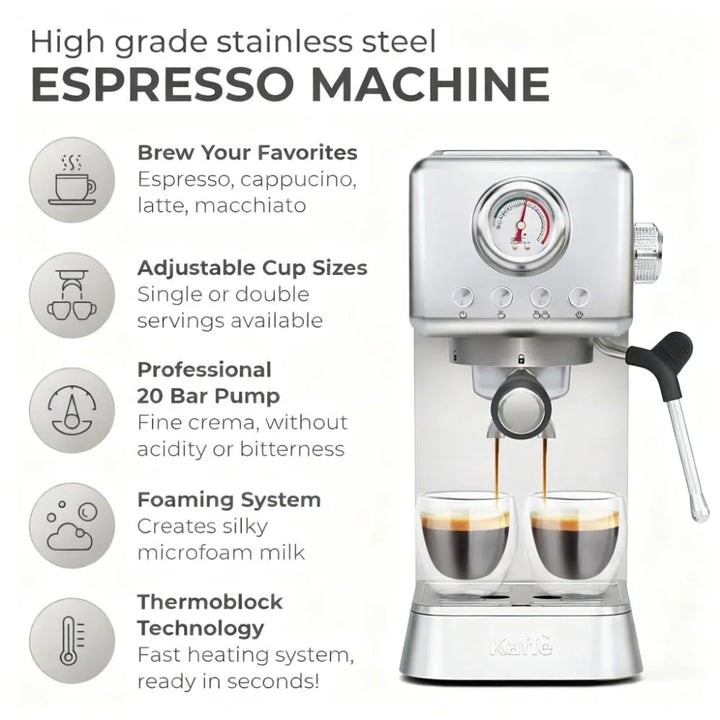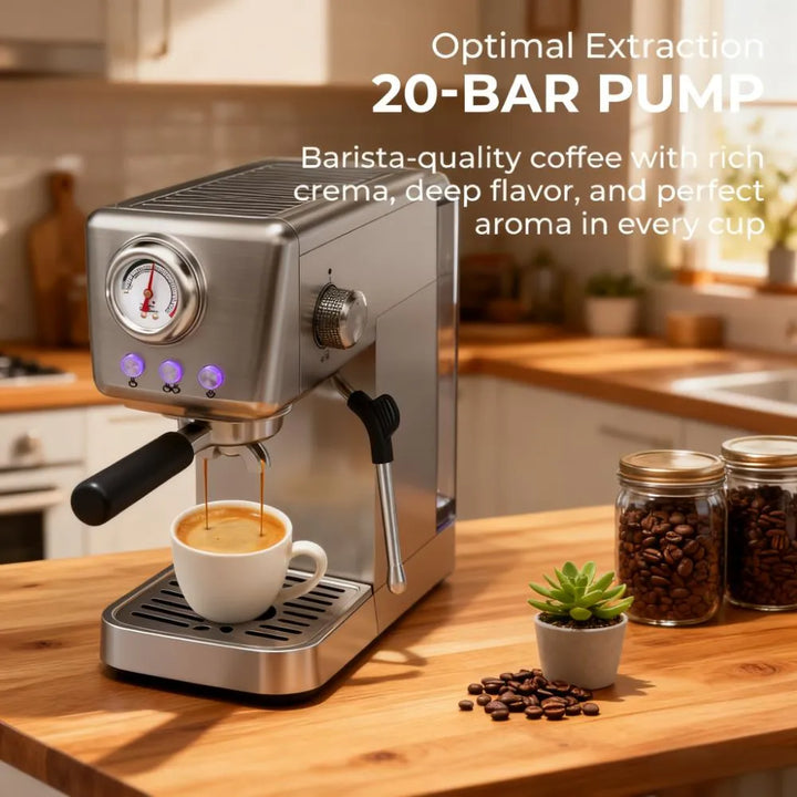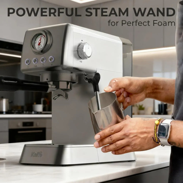Professional Milk Frothing: Dedicated steam wand creates rich, creamy froth in seconds
