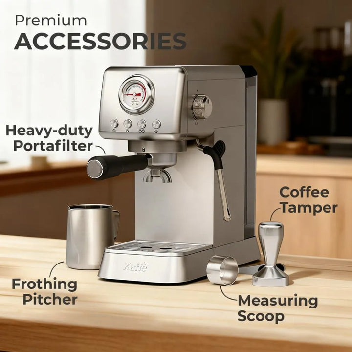 Espresso Coffee Maker with Integrated Milk Frothing System